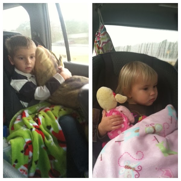 We headed out Wednesday morning to Raleigh to spend Thanksgiving with my dad's family. It was a rainy travel day so we did exactly what we would have done at home, cuddled under blankets, watched a movie, took a nap, and read a book! Bryce was glued to the Planes movie, but Emmy eventually fell asleep. They were great travelers!