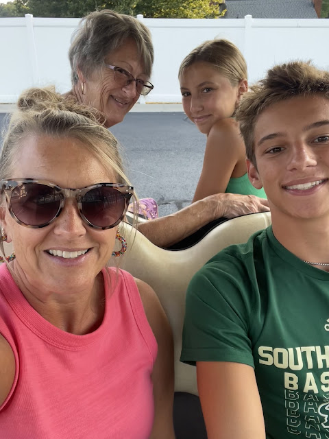 We started celebrating my birthday on Saturday night with dinner at my mom's. After dinner we went for a golf cart ride and played pickleball.